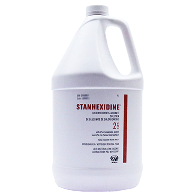 Stanhexidine chlorhexidine gluconate 2% with Isopropyl Alcohol 4% anti-bacterial low subsiding skin cleanser. 4L jug.